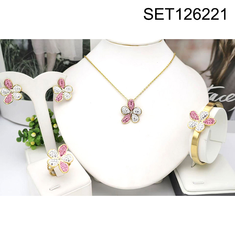 Level B Stainless Steel New Trendy Women Jewelry Flower Golden 4pcs SET