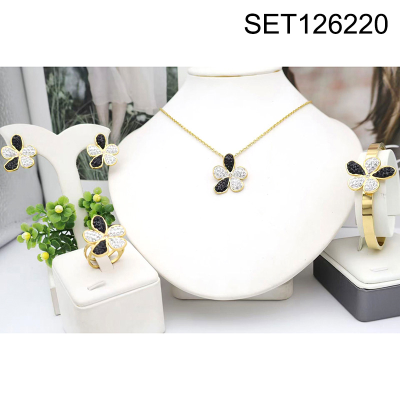 Level B Stainless Steel New Trendy Women Jewelry Flower Golden 4pcs SET