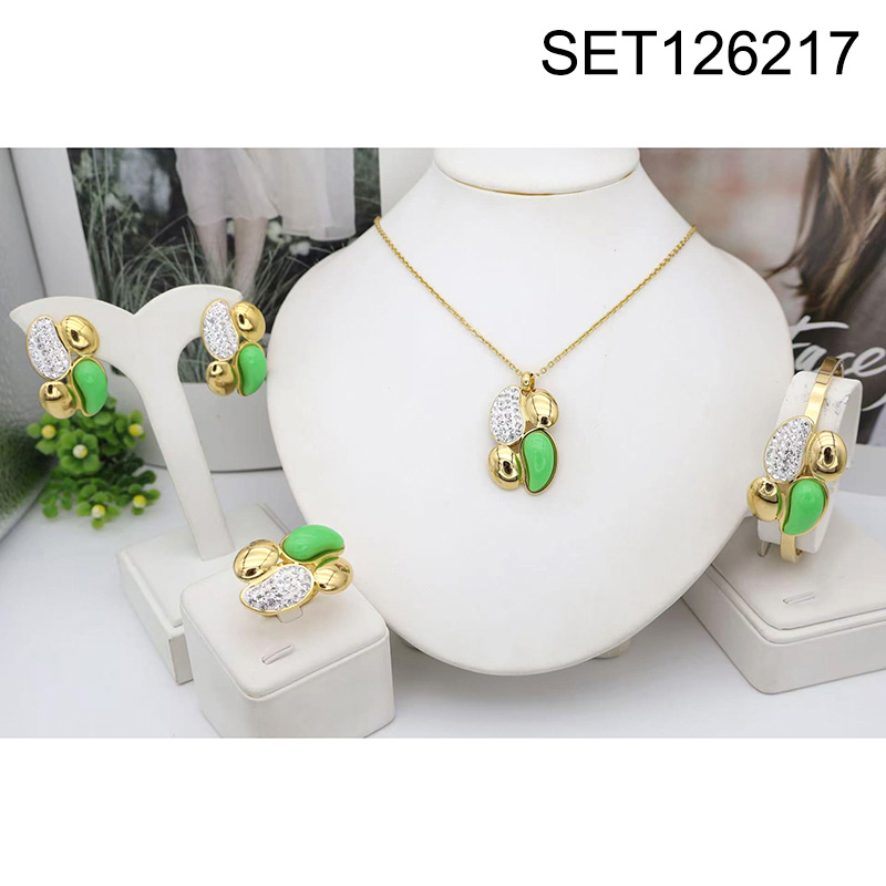 Level B Stainless Steel New Trendy Women Jewelry Water Drip Golden 4pcs SET