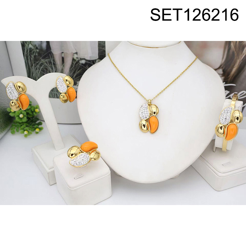 Level B Stainless Steel New Trendy Women Jewelry Water Drip Golden 4pcs SET