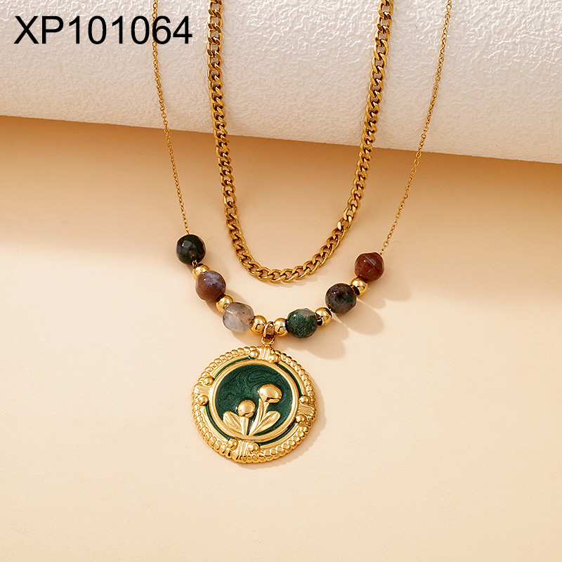Level B Stainless Steel New Trendy Women Jewelry Two Layers Chain Flower Golden Pendant