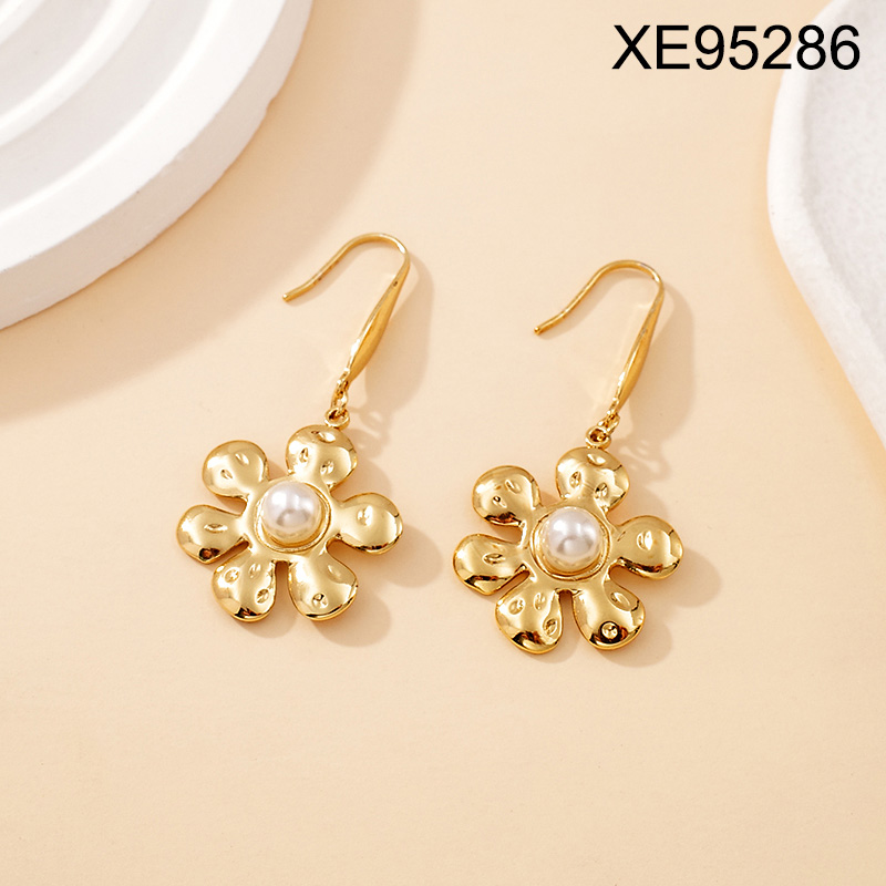 Level B Stainless Steel New Trendy Women Jewelry Pearl Style/Plastic Beads Flower Golden Earrings