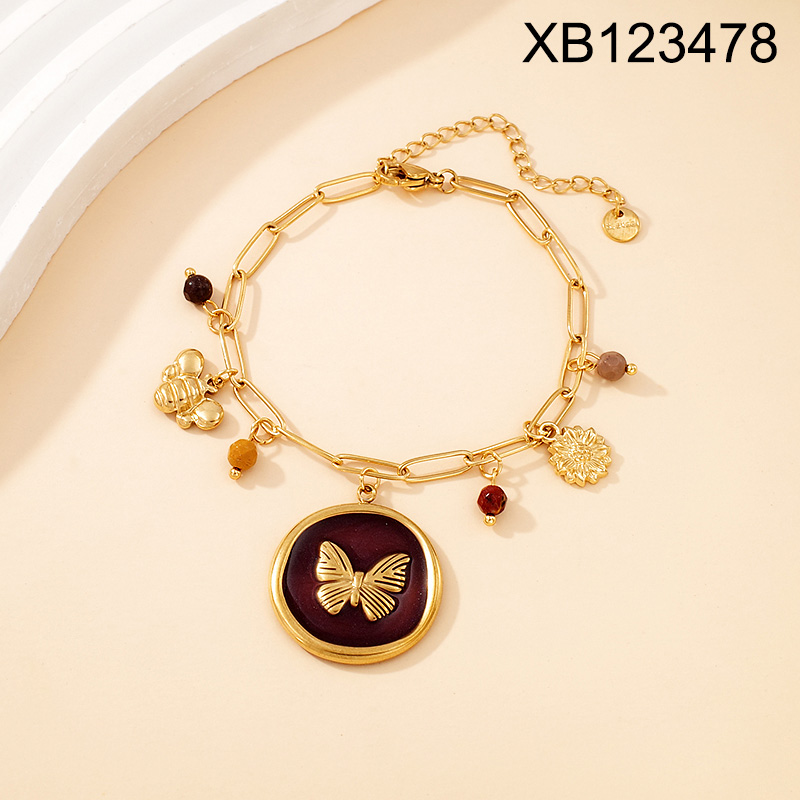 Level B Stainless Steel New Trendy Women Jewelry Animal Butterfly Bee Flower Golden Bracelet