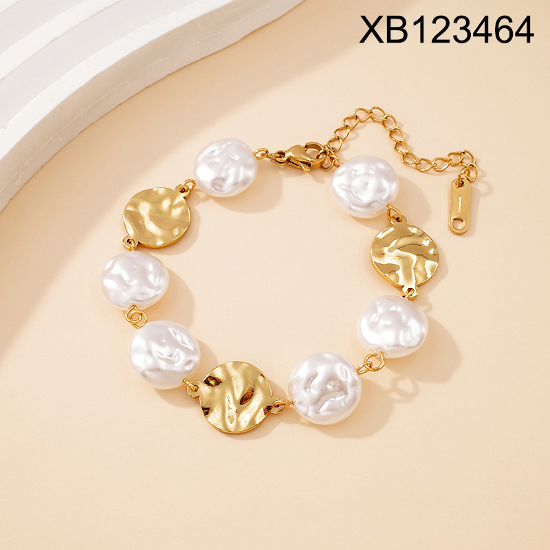 Level B Stainless Steel New Trendy Women Jewelry Pearl Style/Plastic Beads Round Golden Bracelet