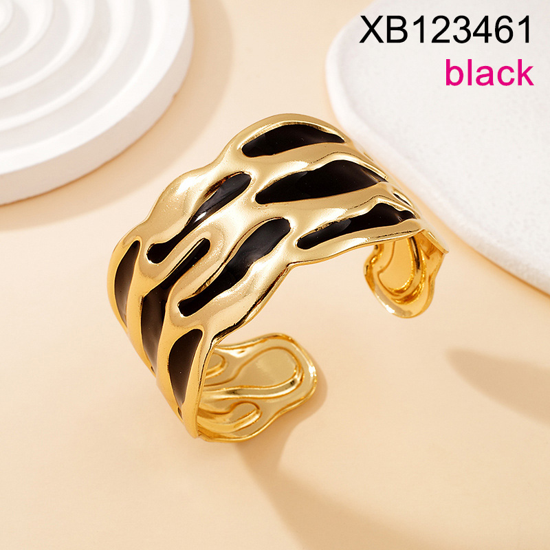 Level C Stainless Steel New Trendy Women Jewelry Drip Oil/Enamel Golden Open Bangle;Bangle size can be adjusted freely