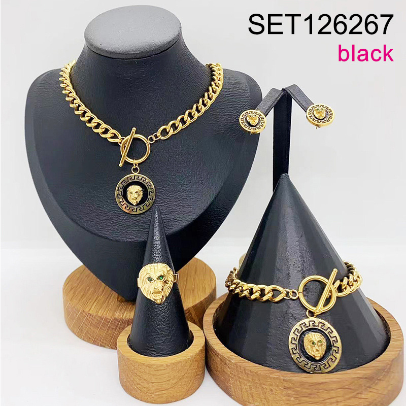 Level B Stainless Steel New Trendy Women Jewelry Black Animal Lion Golden 4pcs SET