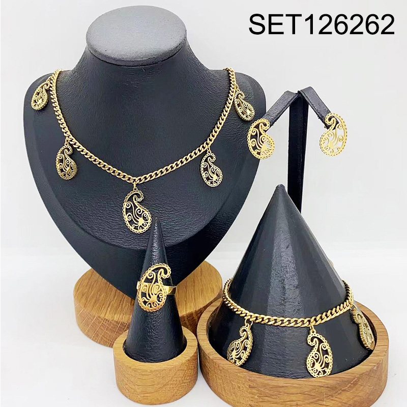 Level B Stainless Steel New Trendy Women Jewelry Water Drip Golden 4pcs SET