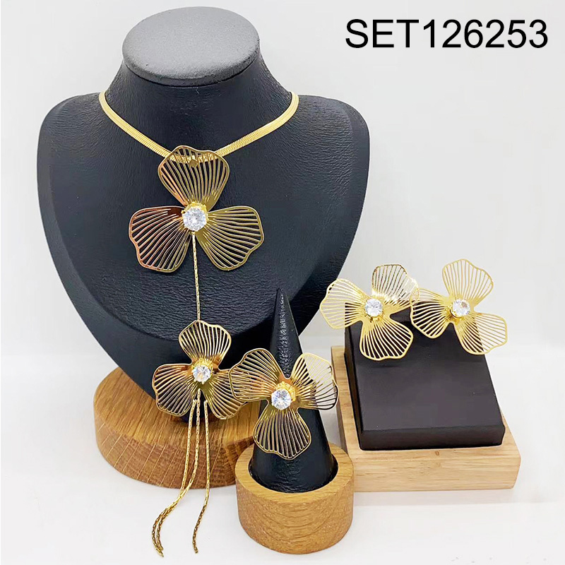 Level B Stainless Steel New Trendy Women Jewelry Flower Golden 3pcs SET