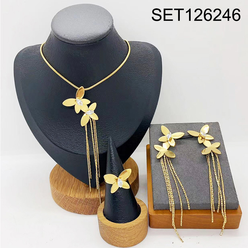 Level B Stainless Steel New Trendy Women Jewelry Animal Butterfly Golden 3pcs SET