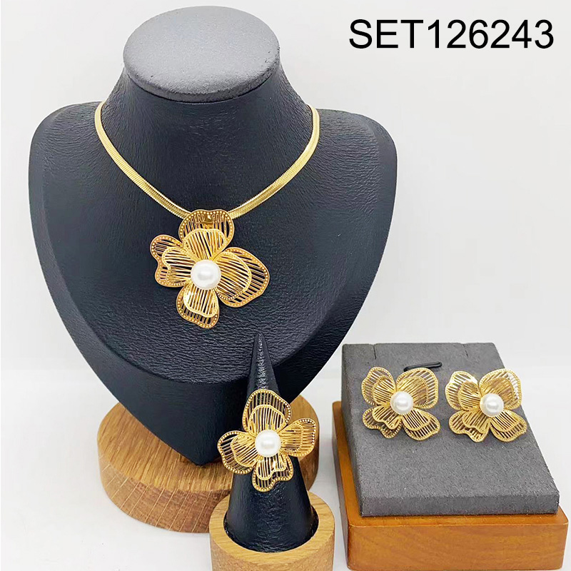 Level B Stainless Steel New Trendy Women Jewelry Pearl Style/Plastic Beads Animal Butterfly Golden 3pcs SET
