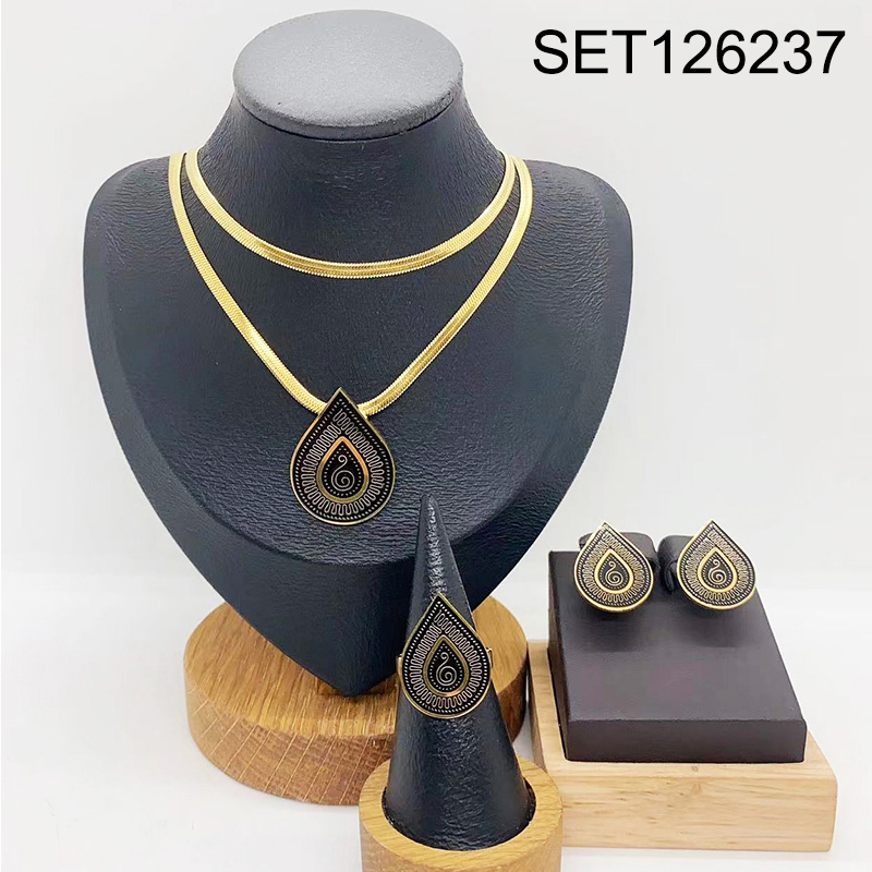 Level B Stainless Steel New Trendy Women Jewelry Two Layers Chain Water Drip Golden 3pcs SET