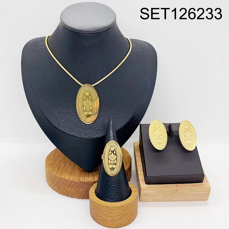 Level B Stainless Steel New Trendy Women Jewelry Oval Golden 3pcs SET