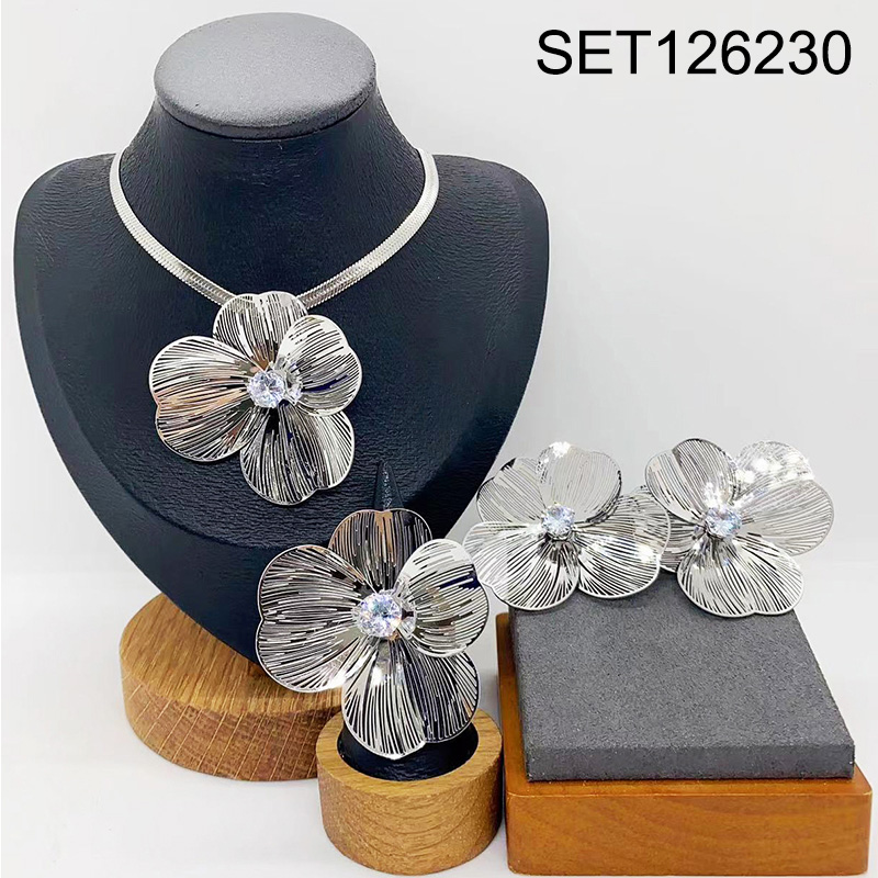 Level B Stainless Steel New Trendy Women Jewelry Flower Steel color 3pcs SET