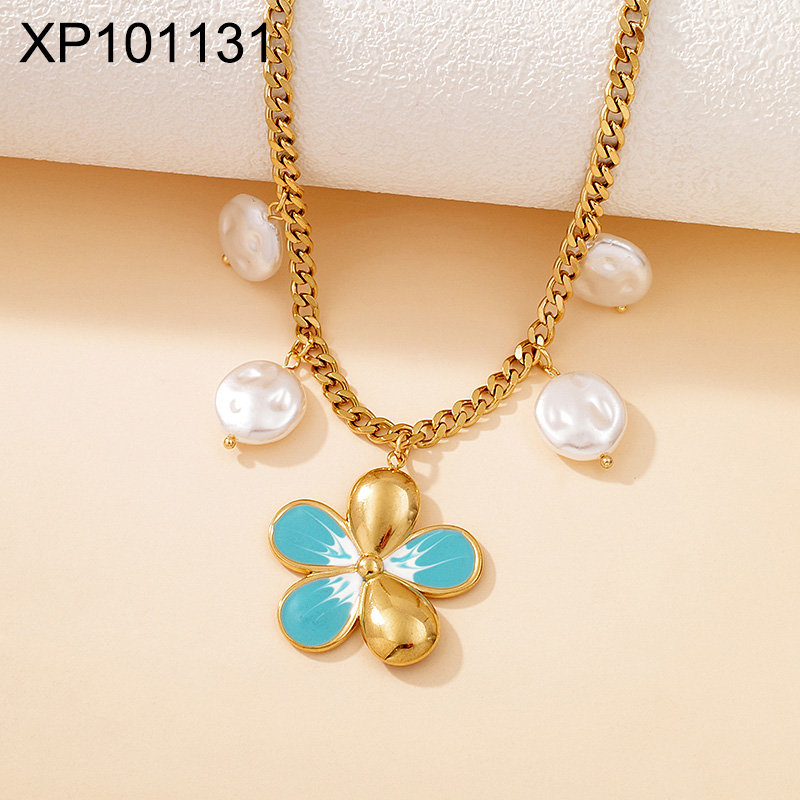 Level B Stainless Steel New Trendy Women Jewelry Pearl Style/Plastic Beads Flower Golden Pendant