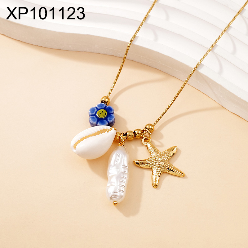 Level B Stainless Steel New Trendy Women Jewelry Pearl Style/Plastic Beads Summer beach Animal Starfish Shell Flower Golden Pendant