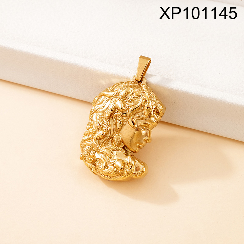 Home > Level B Stainless Steel New Trendy Women Jewelry Greek Mythology Snake Hair Medusa Golden Casting Pendant