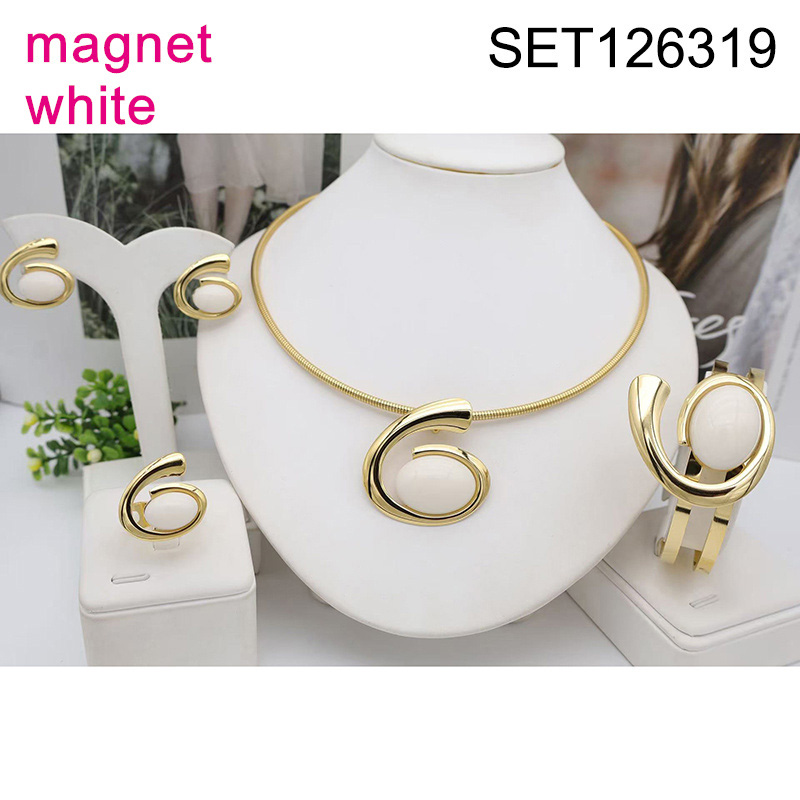 Home > Level B Stainless Steel New Trendy Women Jewelry Oval White Opal Stone Golden Magnet buckle 4pcs SET