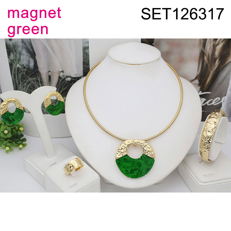 Level B Stainless Steel New Trendy Women Jewelry Green Round Golden Magnet buckle 4pcs SET