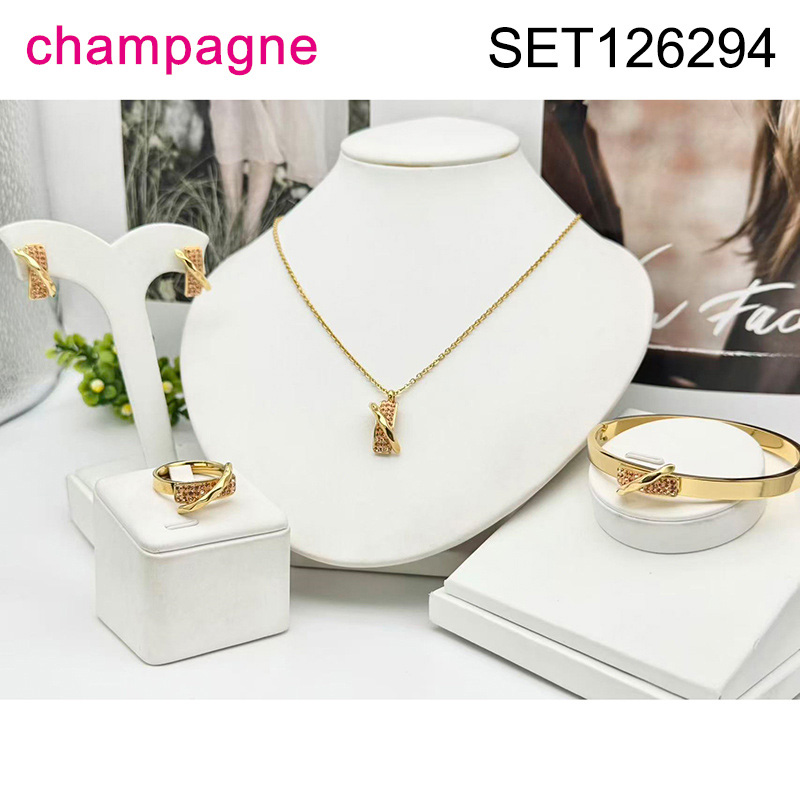 Level B Stainless Steel New Trendy Women Jewelry Clay Sticky Champagne Rhinestone Golden 4pcs SET