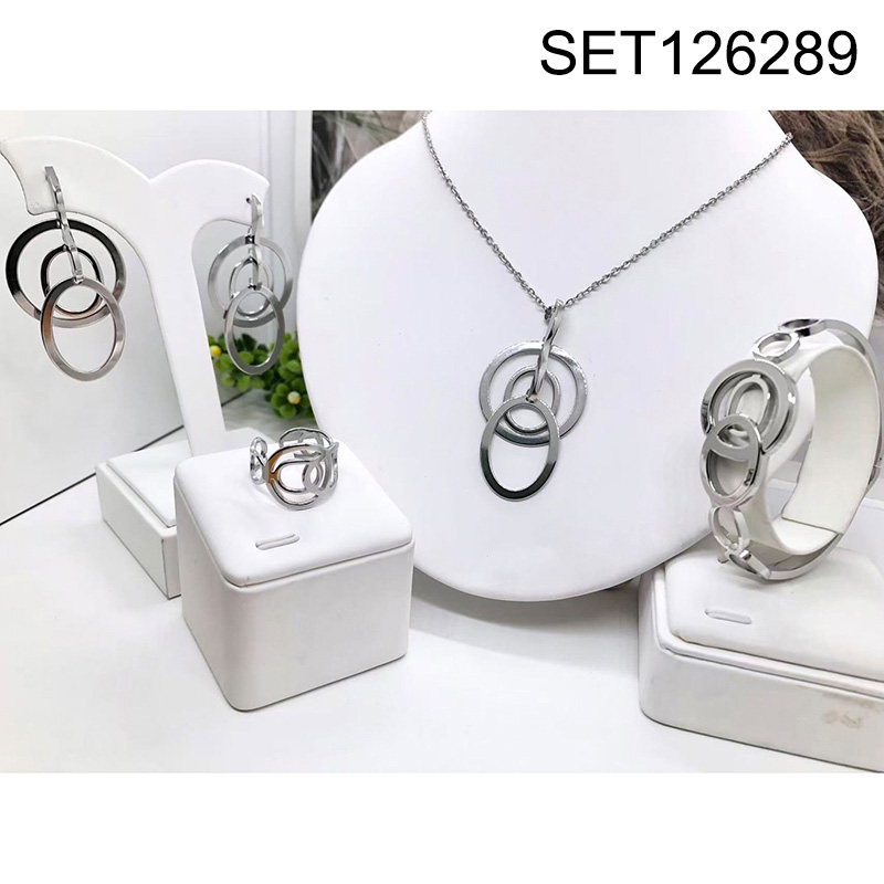 Level B Stainless Steel New Trendy Women Jewelry Oval Round Steel color 4pcs SET