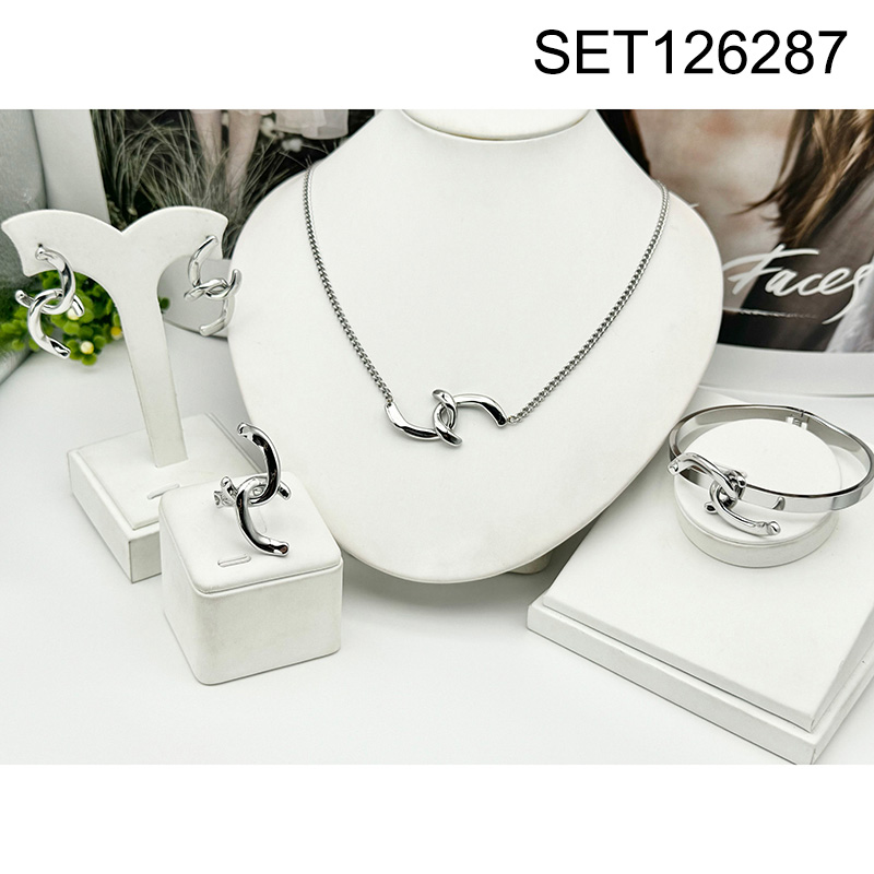 Home > Level B Stainless Steel New Trendy Women Jewelry Letter C Steel color 4pcs SET