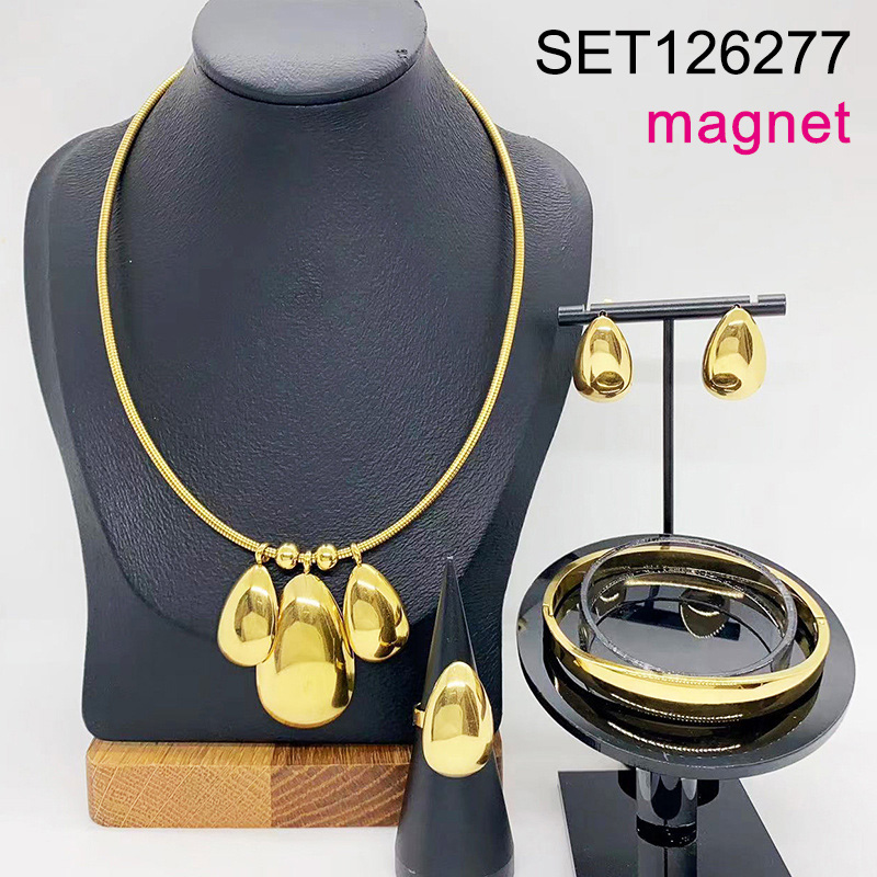 Level B Stainless Steel New Trendy Women Jewelry Water Drip Golden Magnet buckle 4pcs SET