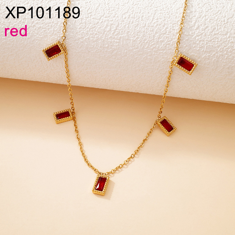 Level B Stainless Steel New Trendy Women Jewelry Rectangle Red Crystal zirconium Golden Pendant