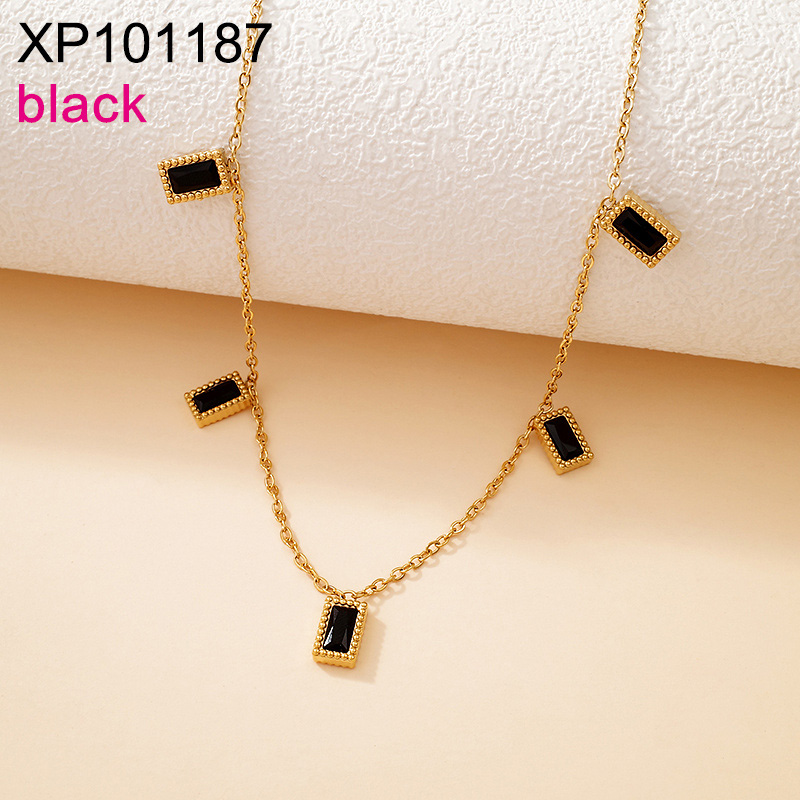 Level B Stainless Steel New Trendy Women Jewelry Rectangle Black Crystal zirconium Golden Pendant