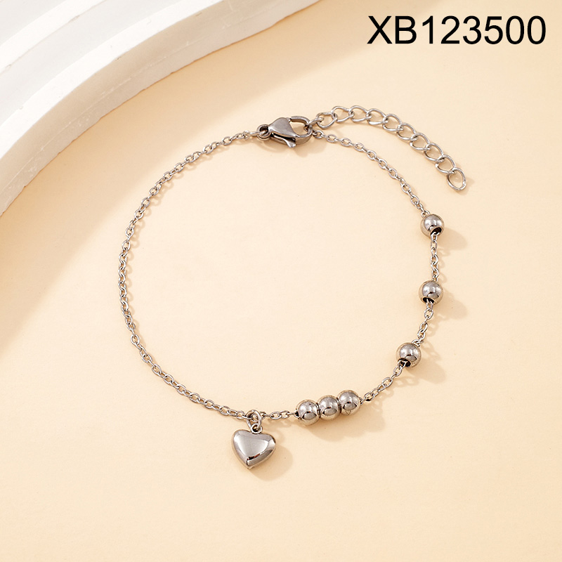 Level B Stainless Steel New Trendy Women Jewelry Heart Steel color Bracelet