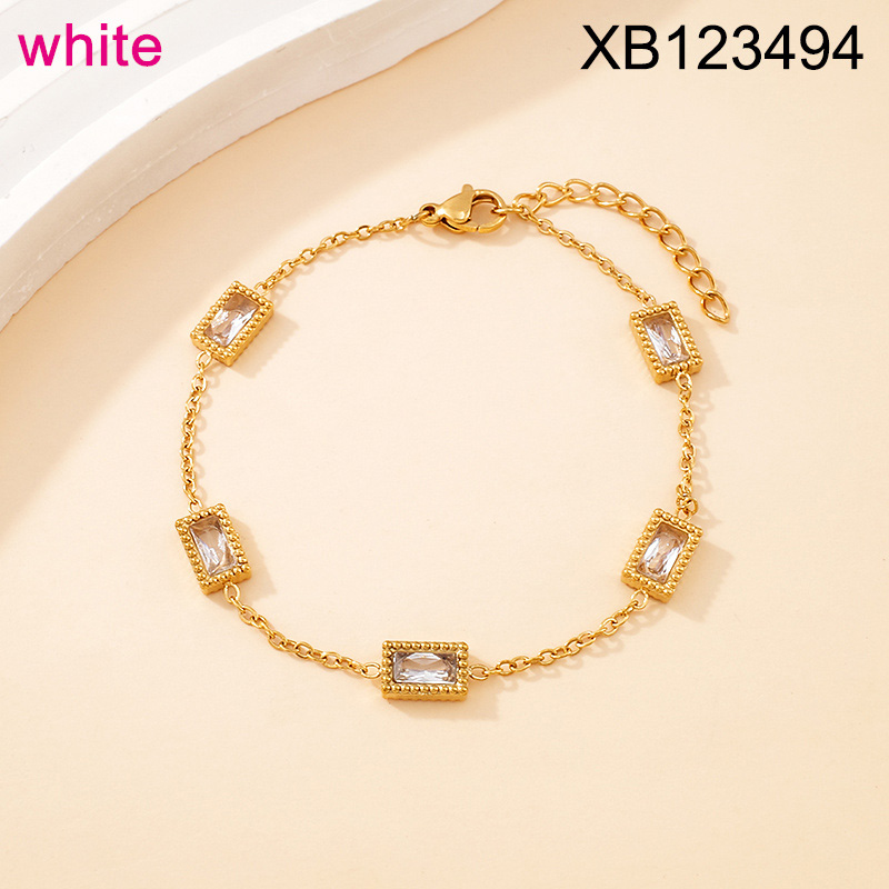 Level B Stainless Steel New Trendy Women Jewelry Rectangle White Crystal zirconium Golden Bracelet