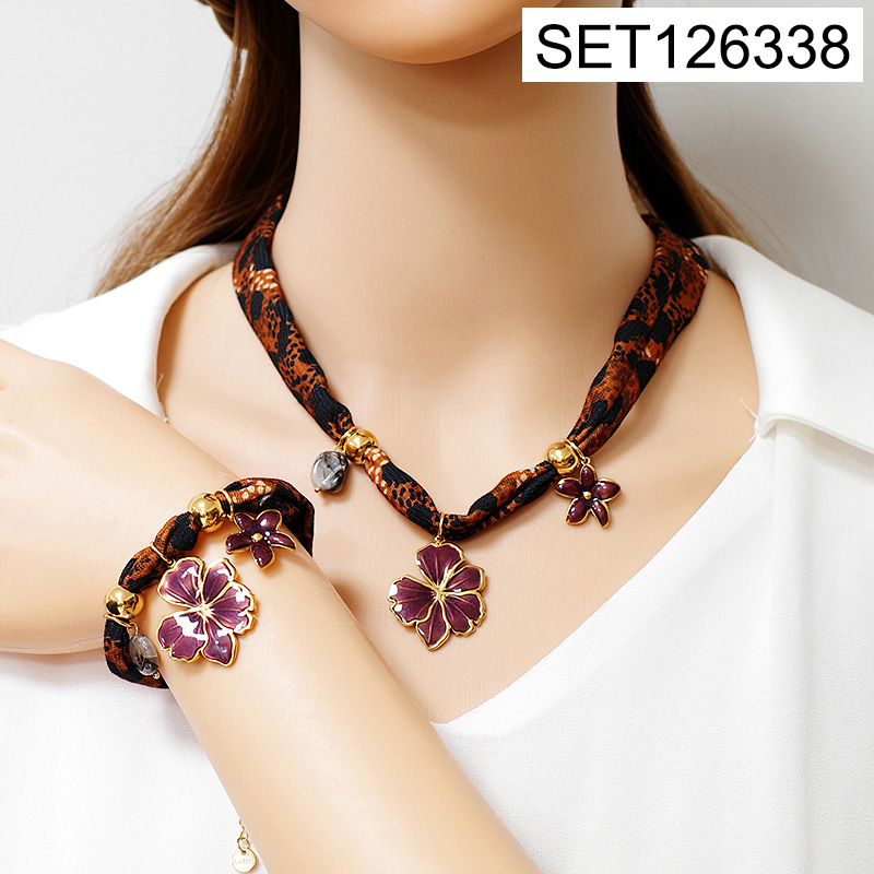 Level B Stainless Steel New Trendy Women Jewelry Drip Oil/Enamel Flower Golden Chain SET