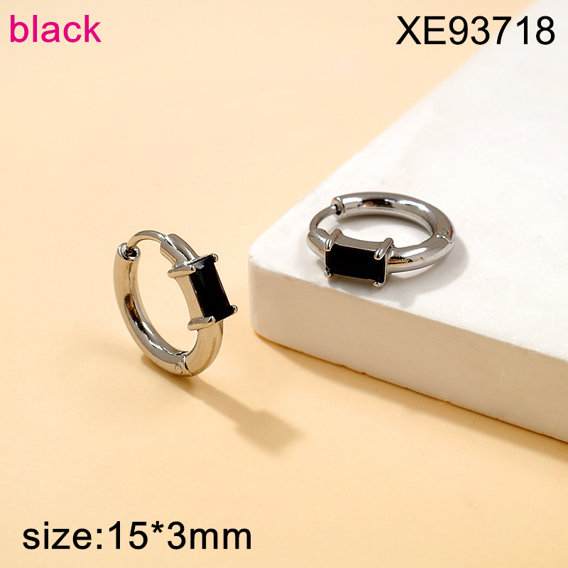 Home > Level A Stainless Steel New Trendy Women Jewelry Studded Rectangle Black Zircon Steel color Hoop Earrings