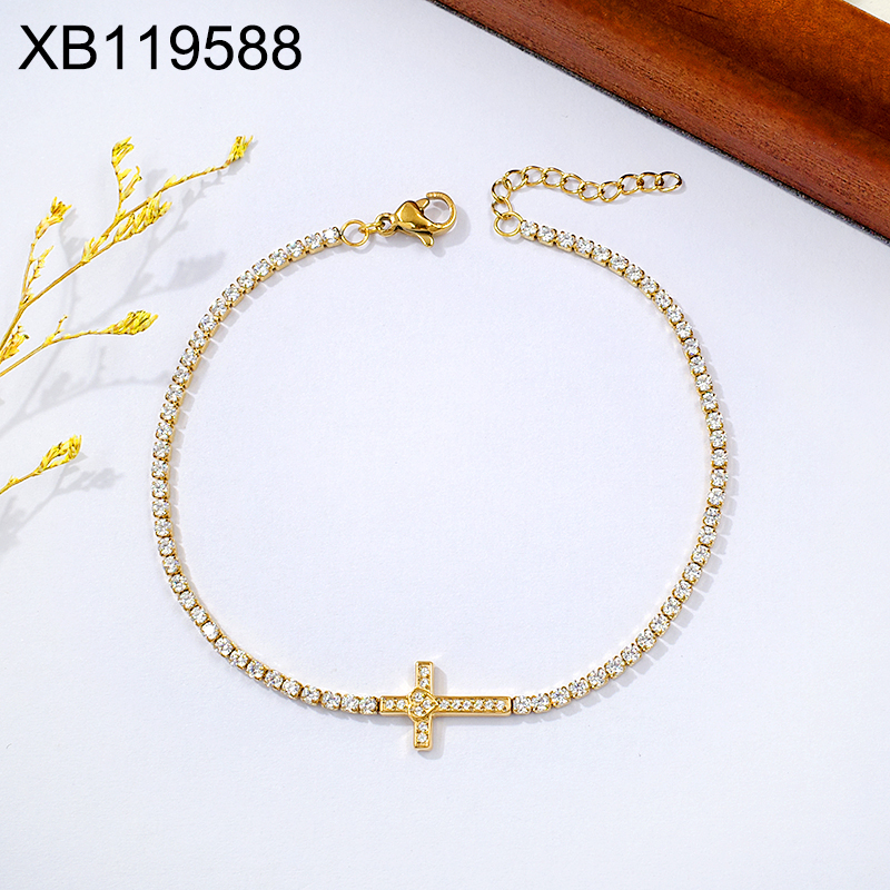 Home > Level A Stainless Steel New Trendy Women Jewelry Cross Golden Zircon Bracelet
