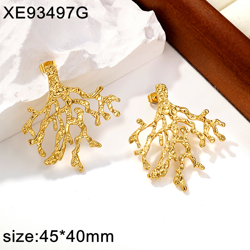 Home > Level A Stainless Steel New Trendy Women Jewelry Summer beach Branch Golden Earrings