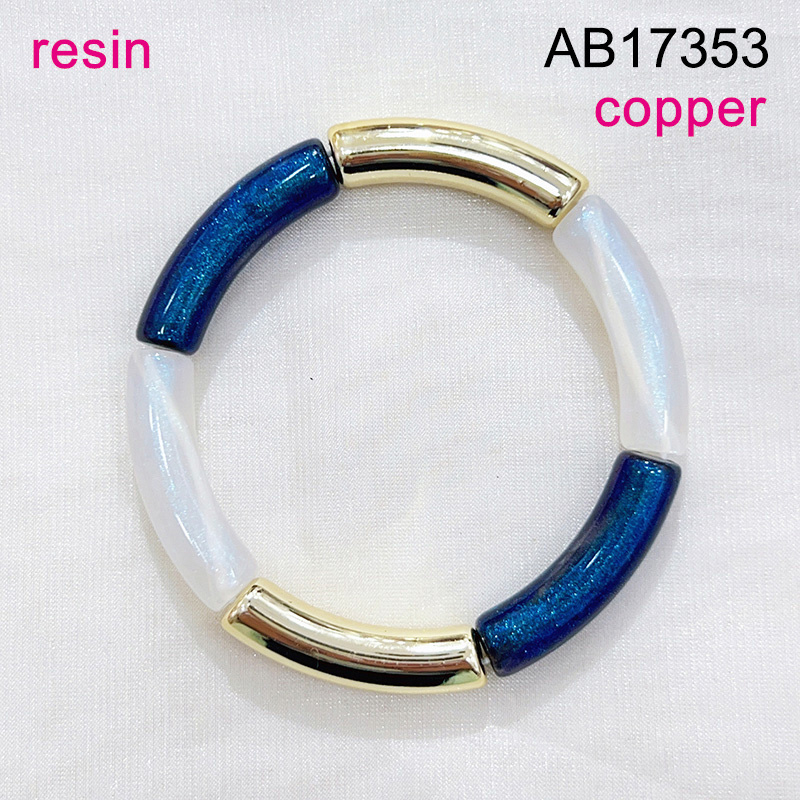 Level B Fashion Jewelry New Trendy Women Jewelry Resin Golden Elastic Bracelet;Material:copper (cobre)