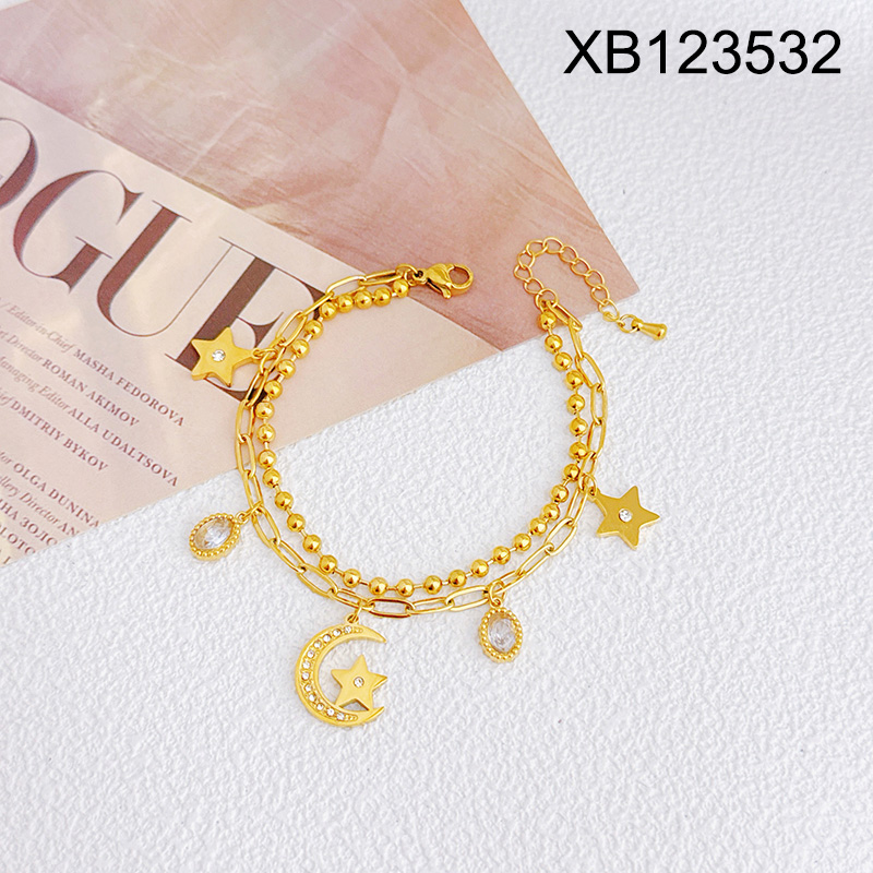 Home > Level B Stainless Steel New Trendy Women Jewelry Two Layers Chain Star Moon Golden Bracelet