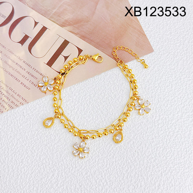 Level B Stainless Steel New Trendy Women Jewelry Two Layers Chain Flower Golden Bracelet