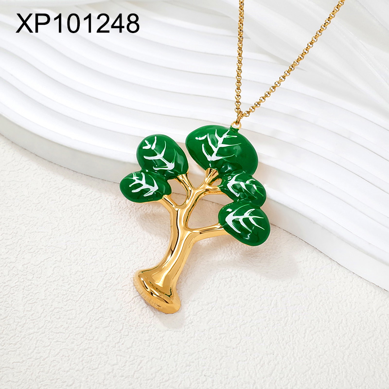 Level B Stainless Steel New Trendy Women Jewelry Drip Oil/Enamel Tree Golden Pendant