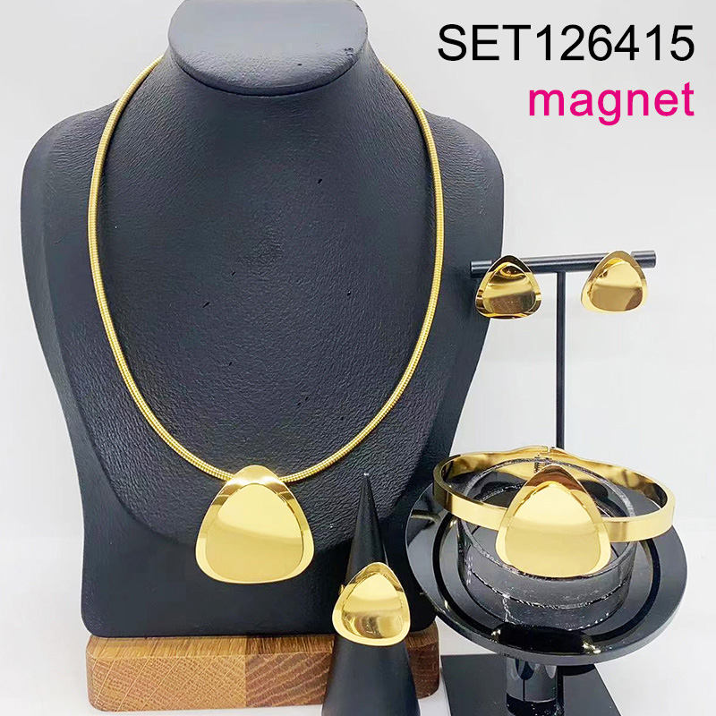 Level B Stainless Steel New Trendy Women Jewelry Triangle Golden Magnet buckle 4pcs SET