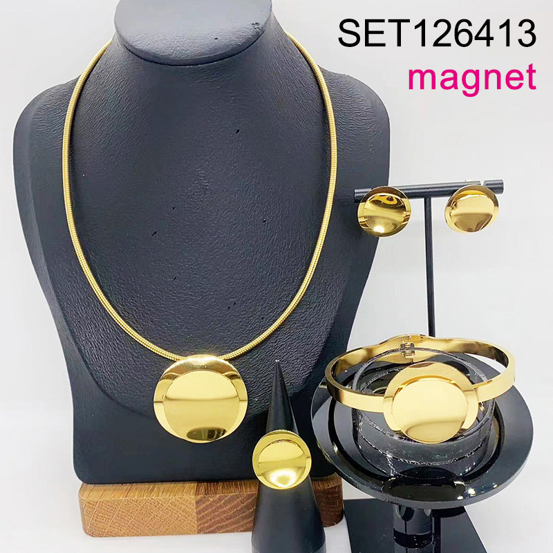 Level B Stainless Steel New Trendy Women Jewelry Round Golden Magnet buckle 4pcs SET