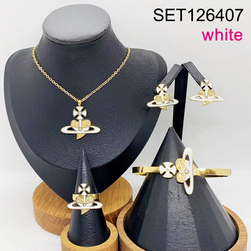 Level B Stainless Steel New Trendy Women Jewelry Drip Oil/Enamel White Heart Golden 4pcs SET