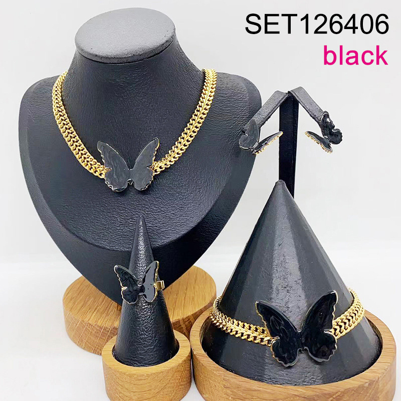 Level B Stainless Steel New Trendy Women Jewelry Drip Oil/Enamel Black Animal Butterfly Golden 4pcs SET