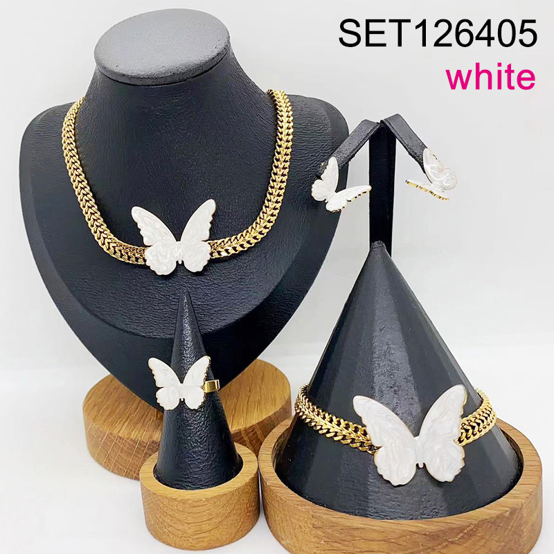 Level B Stainless Steel New Trendy Women Jewelry Drip Oil/Enamel White Animal Butterfly Golden 4pcs SET