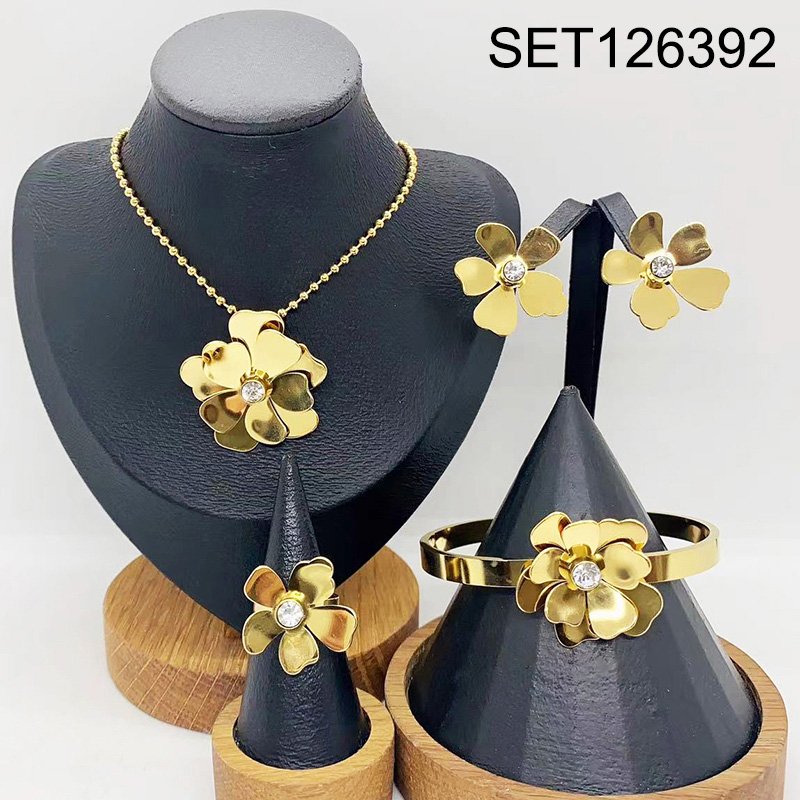Level B Stainless Steel New Trendy Women Jewelry Flower Golden 4pcs SET