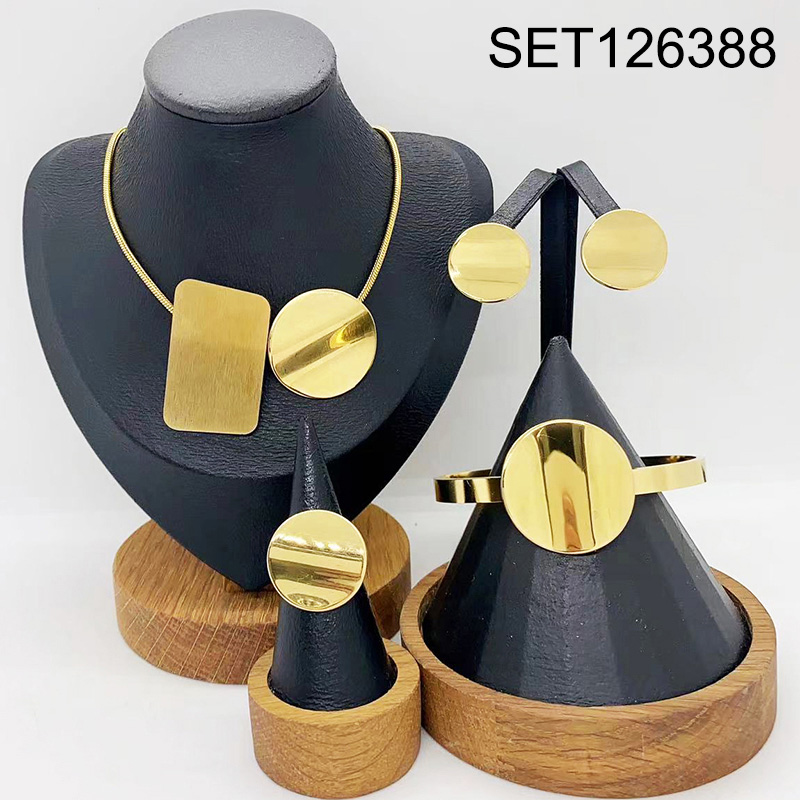 Level B Stainless Steel New Trendy Women Jewelry Rectangle Round Golden 4pcs SET