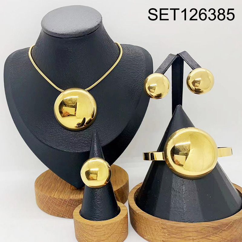 Level B Stainless Steel New Trendy Women Jewelry Round Golden 4pcs SET