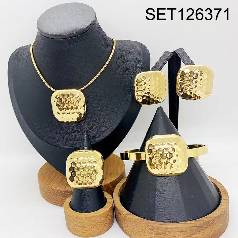 Level B Stainless Steel New Trendy Women Jewelry Square Golden 4pcs SET