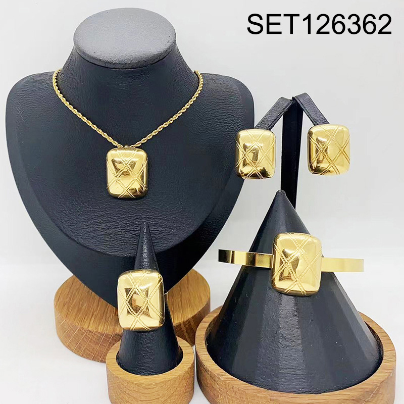 Level B Stainless Steel New Trendy Women Jewelry Rectangle Golden 4pcs SET