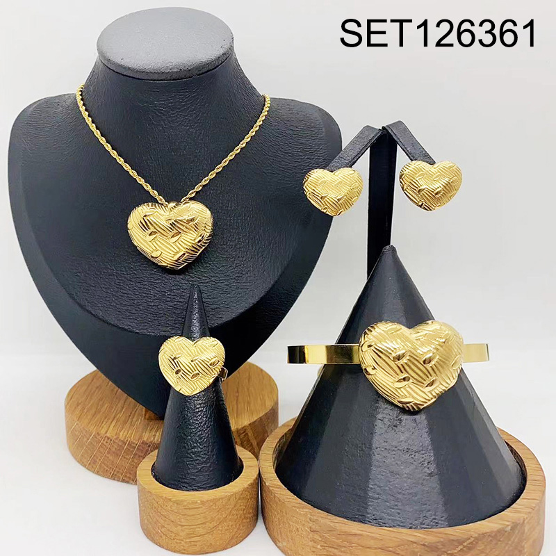 Level B Stainless Steel New Trendy Women Jewelry Heart Golden 4pcs SET