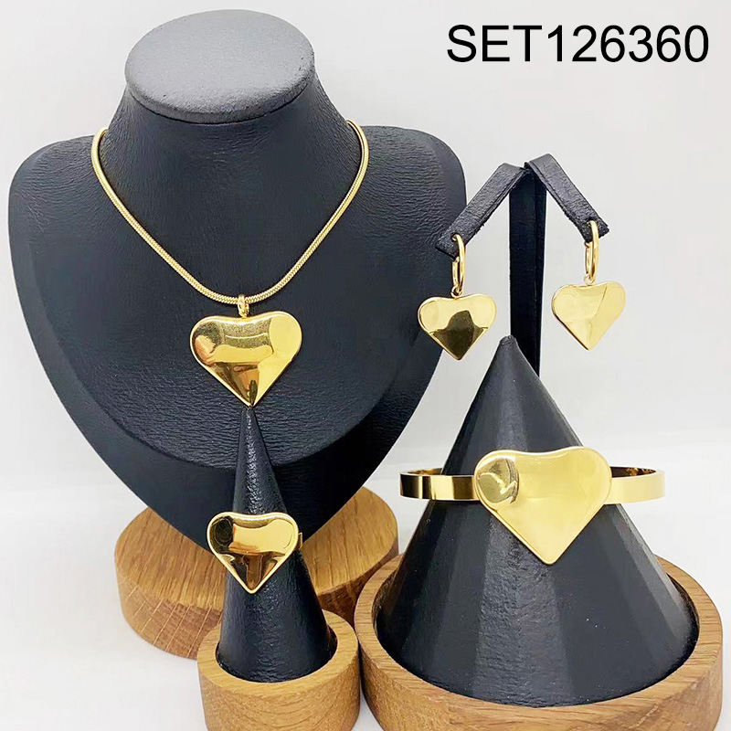 Level B Stainless Steel New Trendy Women Jewelry Heart Golden 4pcs SET